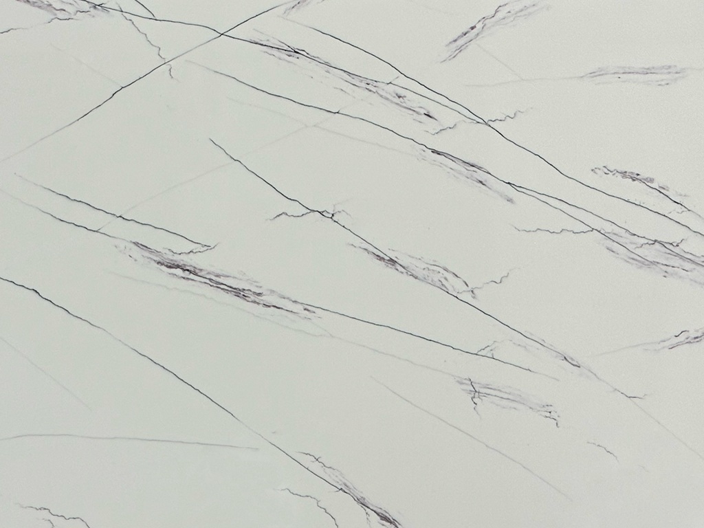 Calacatta Blush excels on kitchen islands, peninsulas, long perimeter runs, utility worktops, and bathroom vanities where a warm marble effect elevates the space. Its soft white base enhances light and pairs effortlessly with both contemporary and traditional interiors. Extend onto splashbacks and upstands for a unified, easy‑clean finish that carries the elegant tone throughout the room.