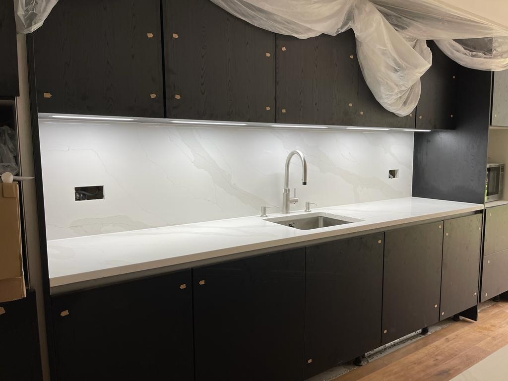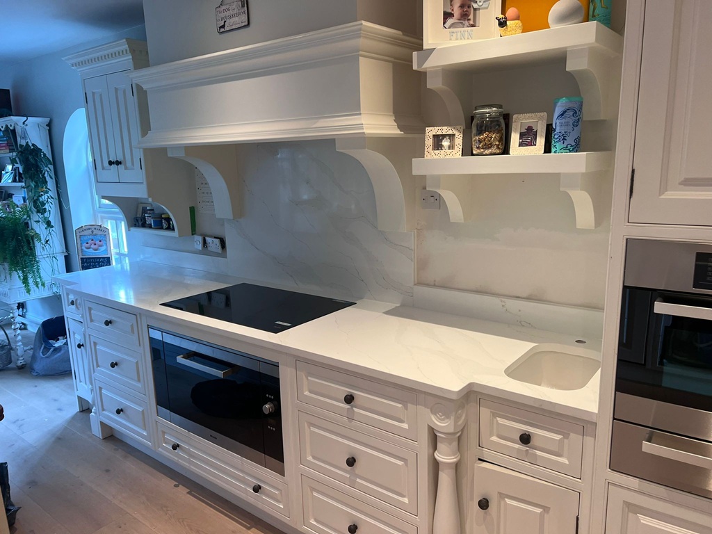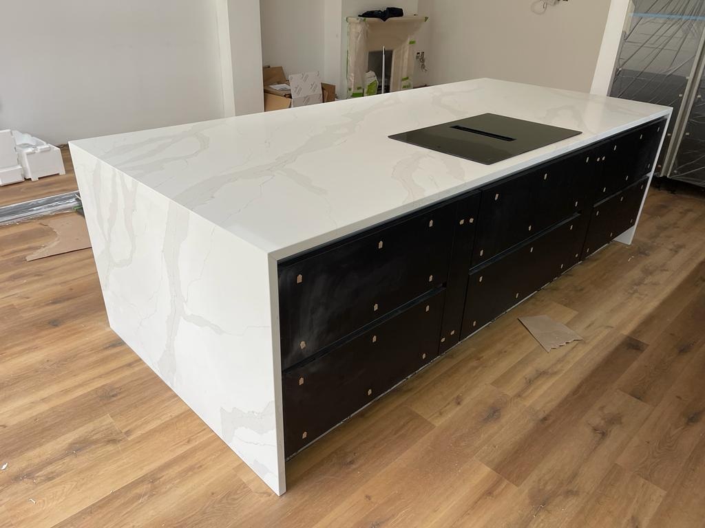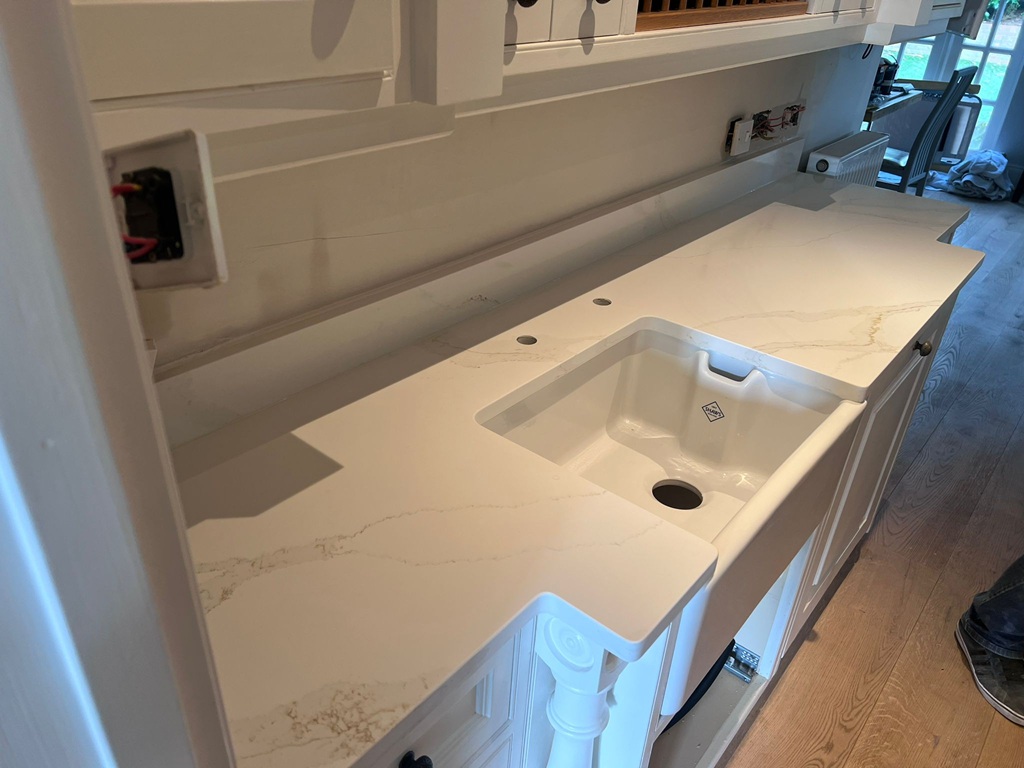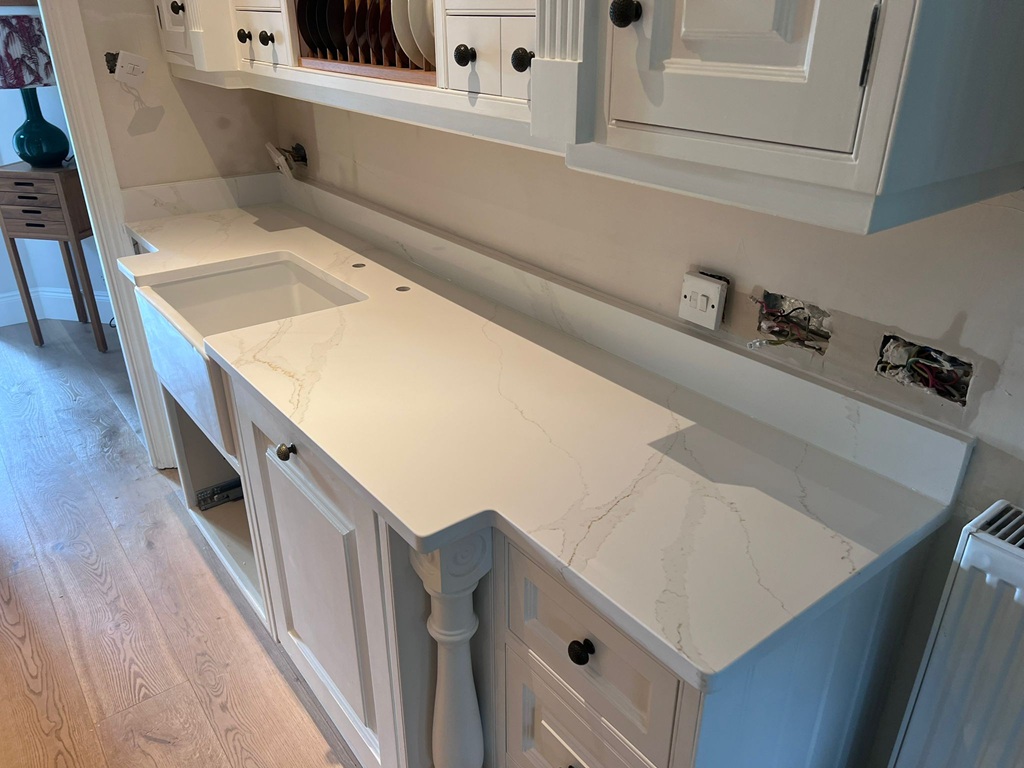 We work to keep popular Classic Quartz Stone colours such as Calacatta Gold available for fast turnaround. For in‑stock slabs, typical installation is around seven days from digital templating. During a home visit, we bring samples so you can assess the white ground, grey veins, and golden accents under your lighting, confirm sink, tap, and hob cut‑outs, plan joint positions around the vein flow, and receive a same‑day itemised quote covering slabs, fabrication, splashbacks, and fitting.