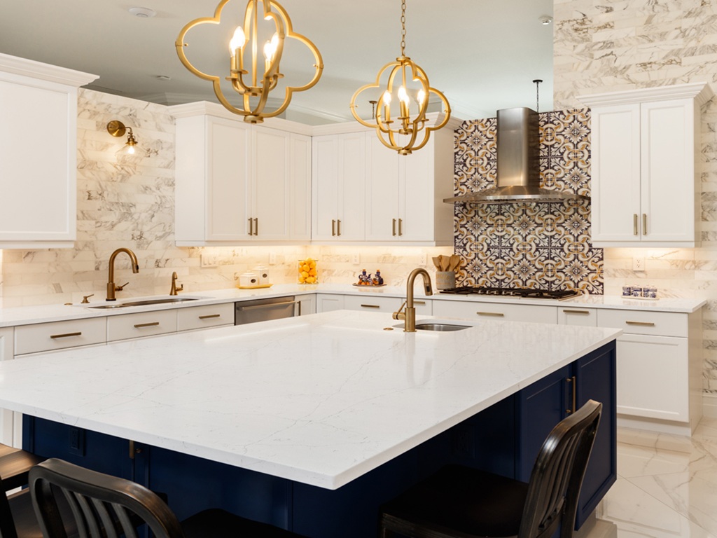 Choose 20 mm for sleek, contemporary lines or 30 mm for a more substantial, traditional edge. Mitred build‑ups can create a deep‑slab look on islands while keeping weight manageable. Finish with matching upstands or a full‑height Calacatta Miranda splashback behind sinks and hobs. Specify integrated draining grooves at undermount sinks and discreet pop‑up sockets on islands to preserve the clean, uninterrupted marble aesthetic.