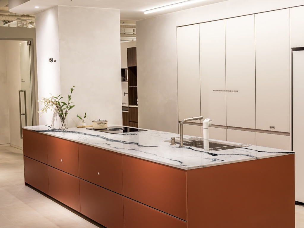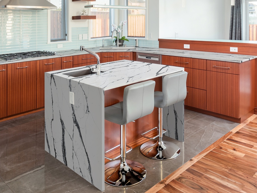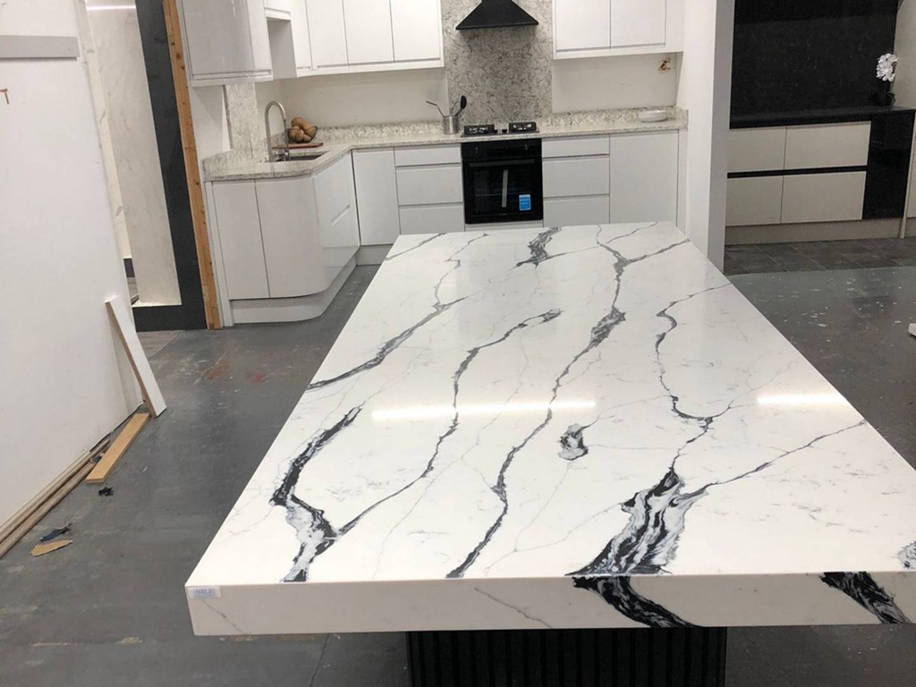 Careful planning of vein direction, joints, and edge profiles ensures Calacatta Black Fusion Quartz reads naturally across sinks, hobs, corners, and feature ends. Accurate slab alignment and detailing help preserve the slab’s visual rhythm while supporting long-term performance in everyday environments.