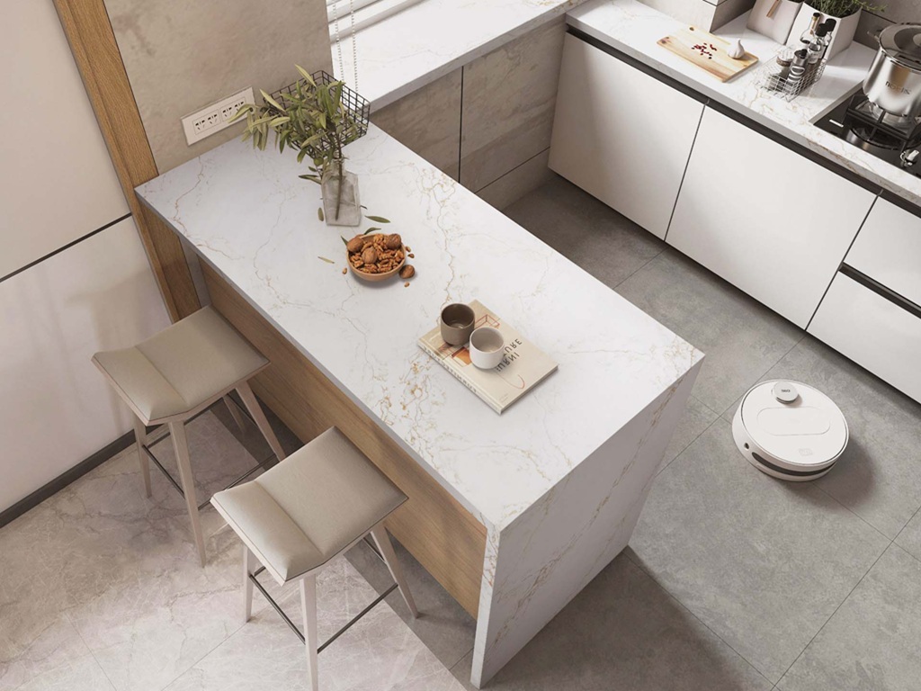 Calacatta Fantastico Quartz Nile Stone routine care involves wiping the surface with warm water and a mild, pH-neutral cleaner. Spills should be cleaned promptly to maintain surface clarity, particularly in high-use areas. Heat protection is recommended by using trivets beneath hot cookware, and abrasive or acidic cleaners should be avoided to preserve the polished finish.