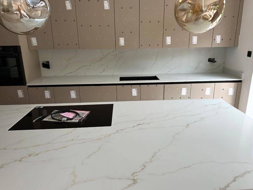 Careful planning of vein direction, joints, and edge profiles ensures Calacatta Soft Gold Quartz reads naturally across sinks, hobs, corners, and feature ends. Accurate slab alignment and detailing help preserve the slab’s soft visual rhythm while supporting long-term performance in everyday environments.