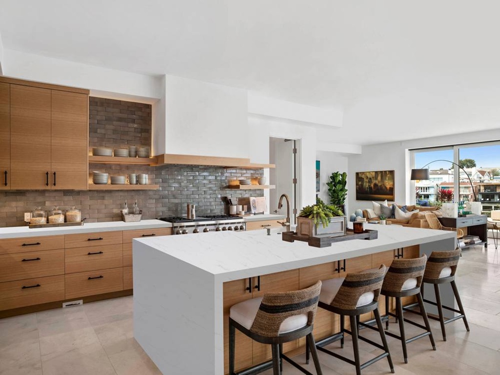 Calacatta Volakas Quartz Nile Stone works best in spaces that benefit from a light surface with subtle movement rather than bold statement veining. The soft grey pattern pairs naturally with matt white cabinetry, warm neutrals, light woods, and brushed metallic finishes, while also creating a clean contrast against charcoal or deep-toned units. Used on islands, waterfall ends, or full-height splashbacks, the gentle veining helps guide the eye across connected planes without creating a busy look. In open-plan layouts, this balance supports visual flow between kitchen zones and adjoining dining or living areas.