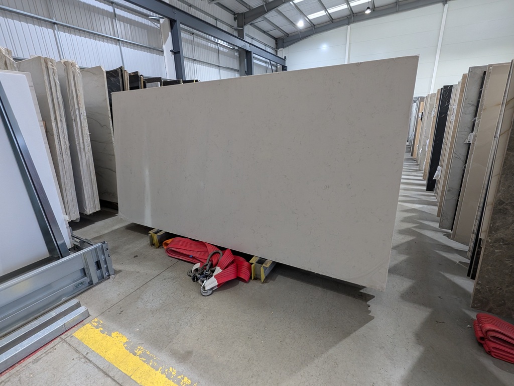 Carrara Jumbo Quartz Nile Stone is well suited to kitchen worktops, islands, splashbacks, utility areas, and bathroom vanities. Its warm white tone helps brighten spaces, while the delicate light grey micro-veining adds gentle detail that remains controlled across large surfaces. This makes it a strong choice for open-plan layouts and continuous applications where a clean, cohesive finish is preferred.