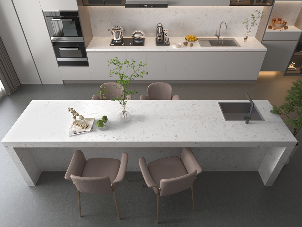 Carrara Satin Quartz Nile Stone routine care involves wiping the surface with warm water and a mild, pH-neutral cleaner to maintain its smooth satin finish. Spills should be cleaned promptly, particularly in high-use areas, to support long-term surface clarity. Heat protection is recommended by using trivets beneath hot cookware, and abrasive or acidic cleaners should be avoided to preserve the finish.
