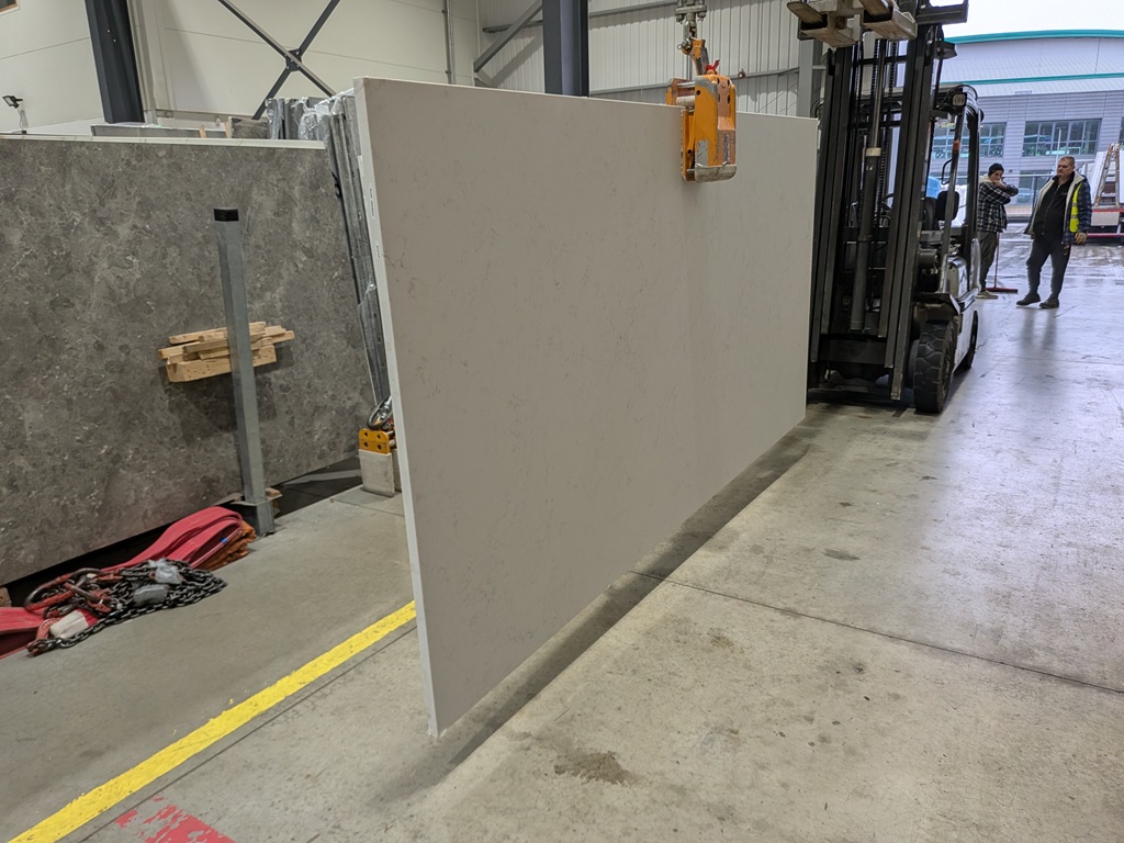 Carrara Satin Quartz Nile Stone is well suited to kitchen worktops, islands, splashbacks, utility areas, and bathroom vanities. Its soft veining and satin finish provide definition without overpowering surrounding materials, making it suitable for continuous surface applications in open-plan interiors.