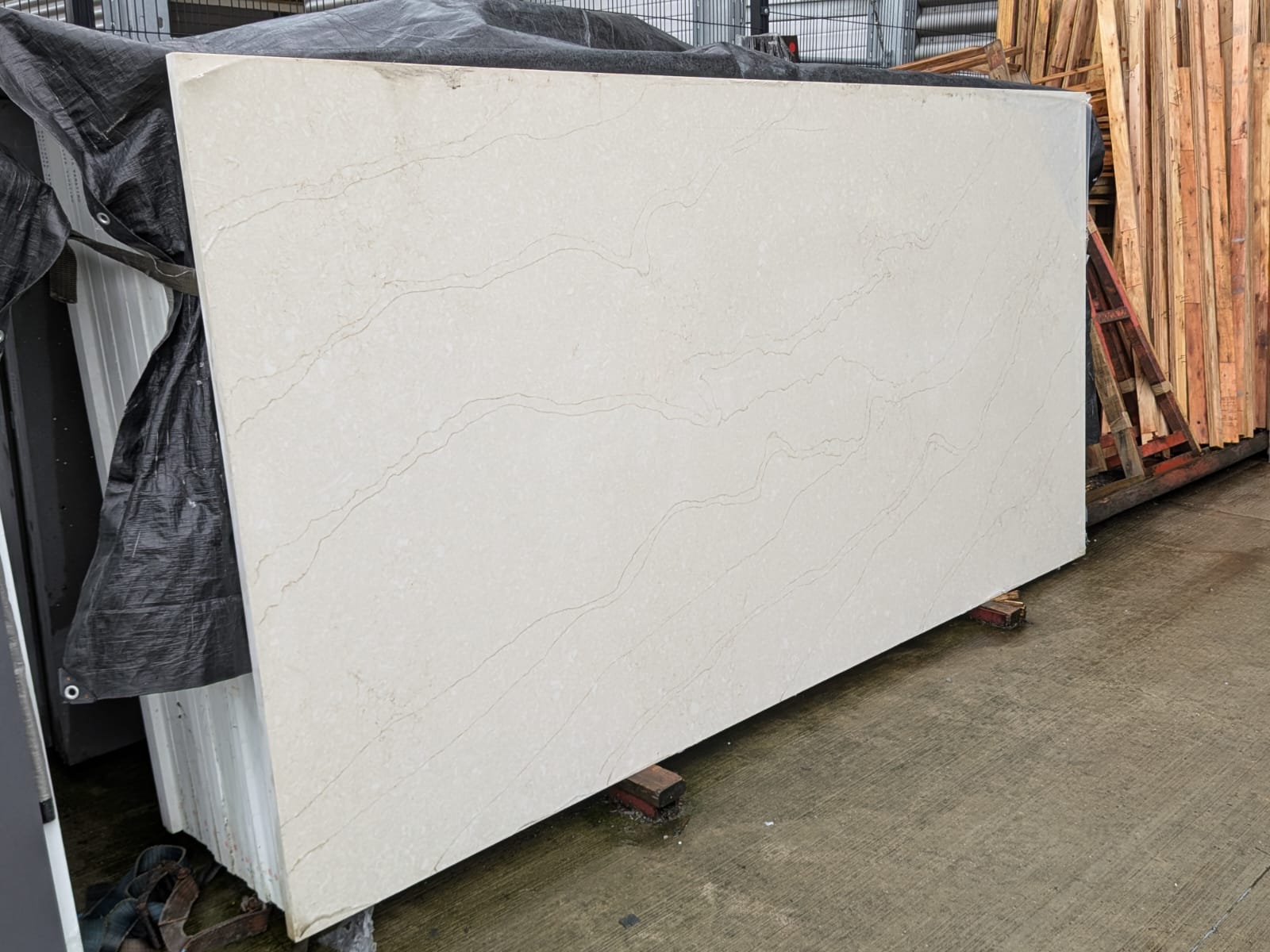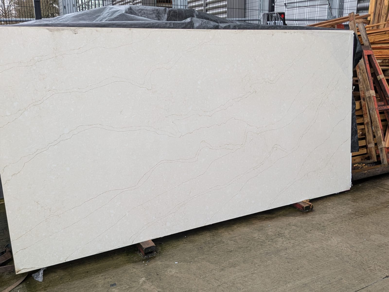 Taj Mahal Elegance Quartz Nile Stone is well suited to kitchen worktops, islands, splashbacks, utility areas, and bathroom vanities. Its warm cream base and low-contrast veining provide definition without overpowering a scheme, making it a strong choice for continuous surface applications in open-plan layouts. The calm movement works particularly well where a softer, more natural look is preferred, while still keeping a clean, polished finish suitable for busy daily use.
