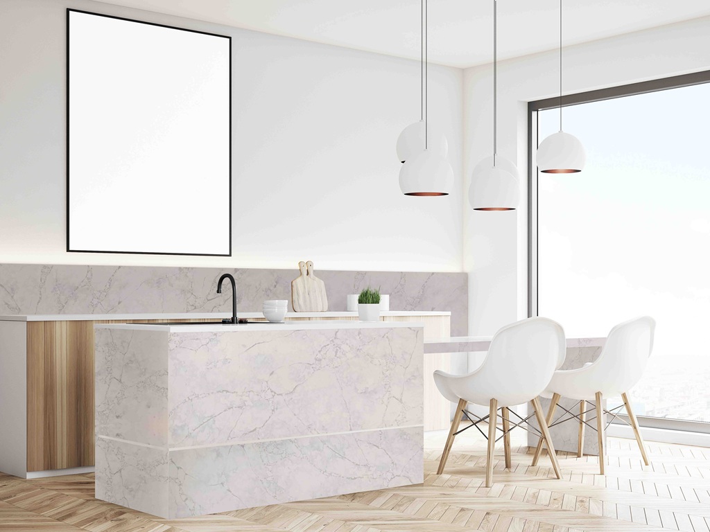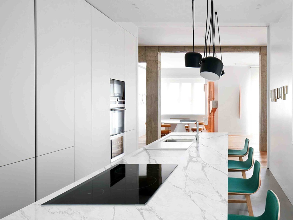 White Eclypse Quartz Nile Stone is well suited to kitchen worktops, islands, splashbacks, utility areas, and bathroom vanities. Its soft veining and controlled contrast provide definition in open-plan layouts while remaining consistent enough for continuous surface applications.