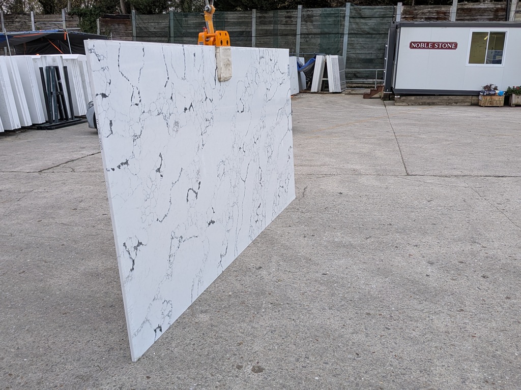 Engineered quartz construction provides a dense, low-absorption surface that supports daily kitchen and bathroom use. Arabescato Black Quartz Noble Stone is resistant to common household spills and surface wear when cared for correctly, maintaining its crisp background and vein clarity over time. Consistent slab calibration also allows for clean joins and precise cut-outs during fabrication.