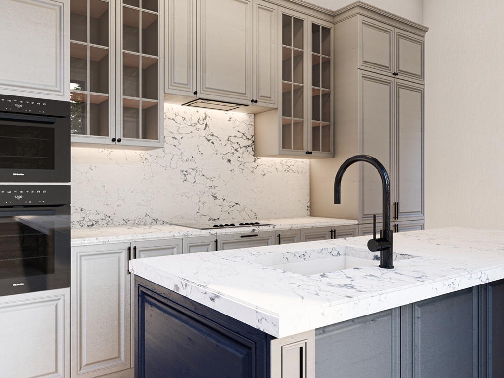 Careful planning of vein direction, joints, and edge profiles ensures Arabescato Black Quartz reads naturally across sinks, hobs, corners, and feature ends. Accurate slab alignment and detailing help preserve the slab’s visual rhythm while supporting long-term performance in everyday environments.