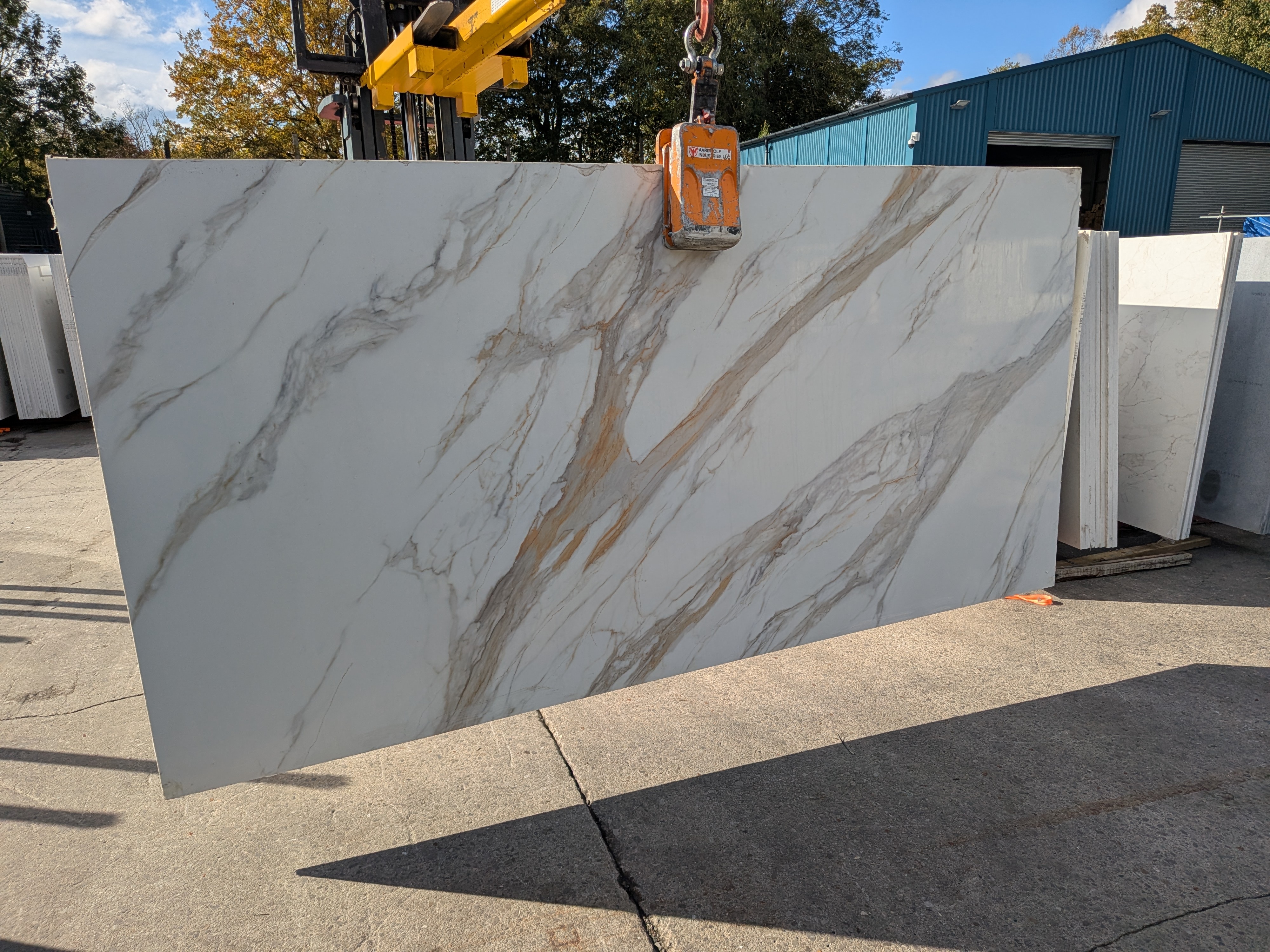 Calacatta Barcelona 3D Quartz Noble Stone is well suited to kitchen worktops, islands, splashbacks, utility areas, and bathroom vanities. Its warm sweeping veining provides definition in open-plan layouts while remaining controlled enough for continuous surface applications.