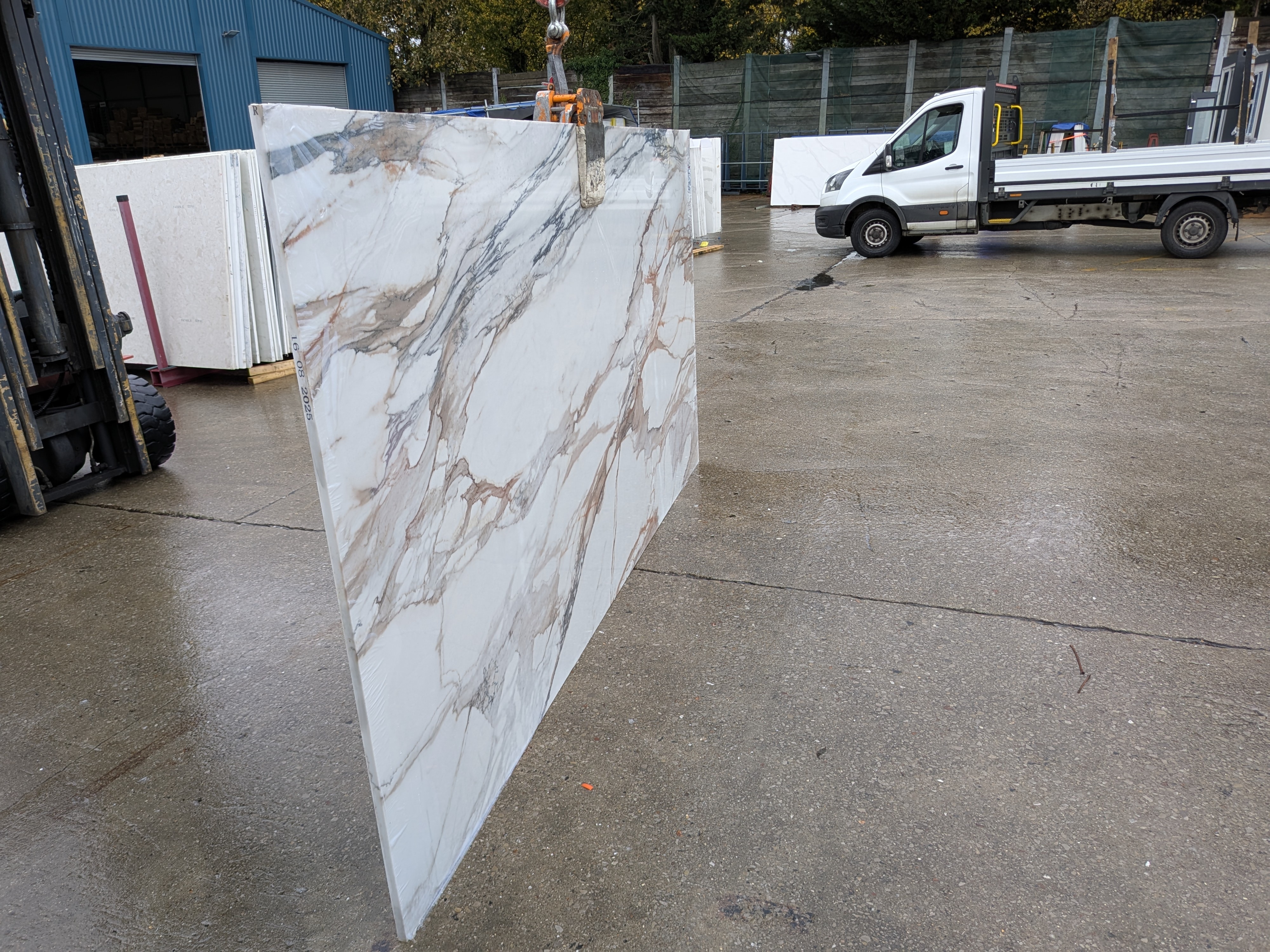 Calacatta Borghini 3D Quartz Noble Stone is well suited to kitchen worktops, islands, splashbacks, utility rooms, and bathroom vanities. Its high-contrast veining provides definition in open-plan layouts while remaining controlled enough for continuous surface applications.