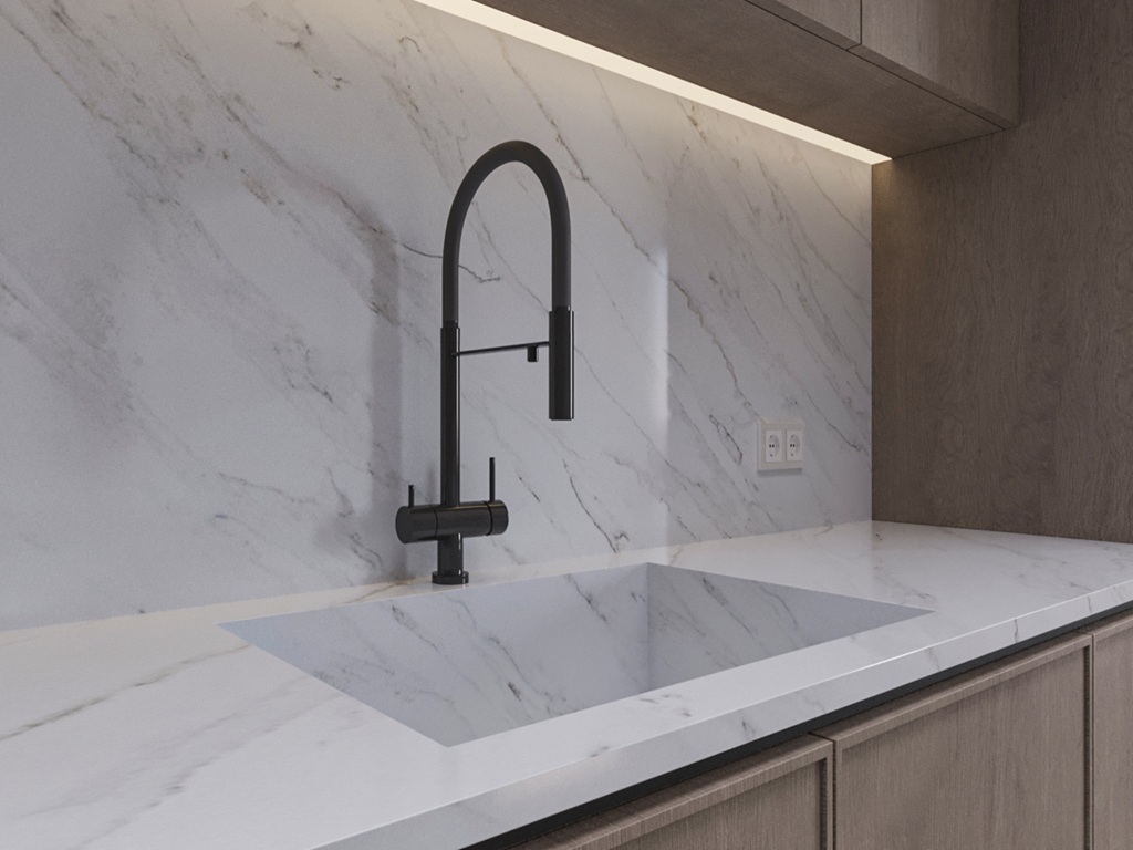 Careful planning of vein direction, joints, and edge profiles ensures Calacatta Marbella Quartz reads naturally across sinks, hobs, corners, and feature ends. Accurate slab alignment and detailing help preserve the slab’s refined visual rhythm while supporting long-term performance in everyday environments.