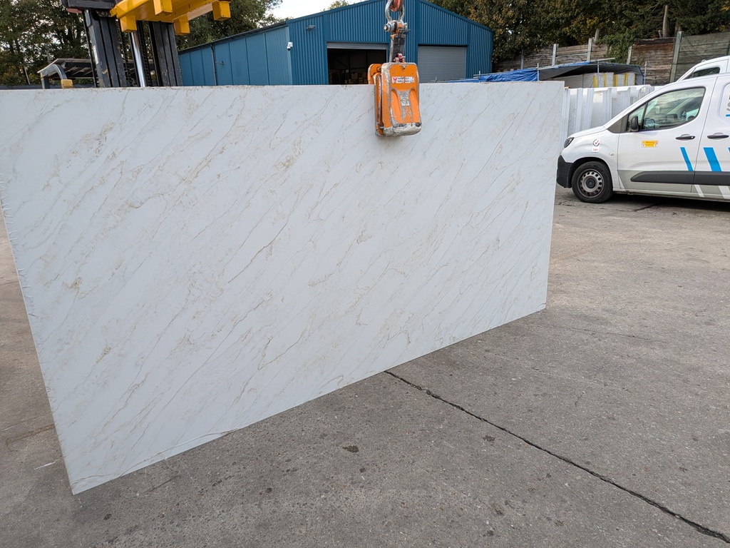 Calacatta Marbella Quartz Noble Stone is well suited to kitchen worktops, islands, splashbacks, utility areas, and bathroom vanities. Its refined marble-style veining provides definition in open-plan layouts while remaining controlled enough for continuous surface applications.