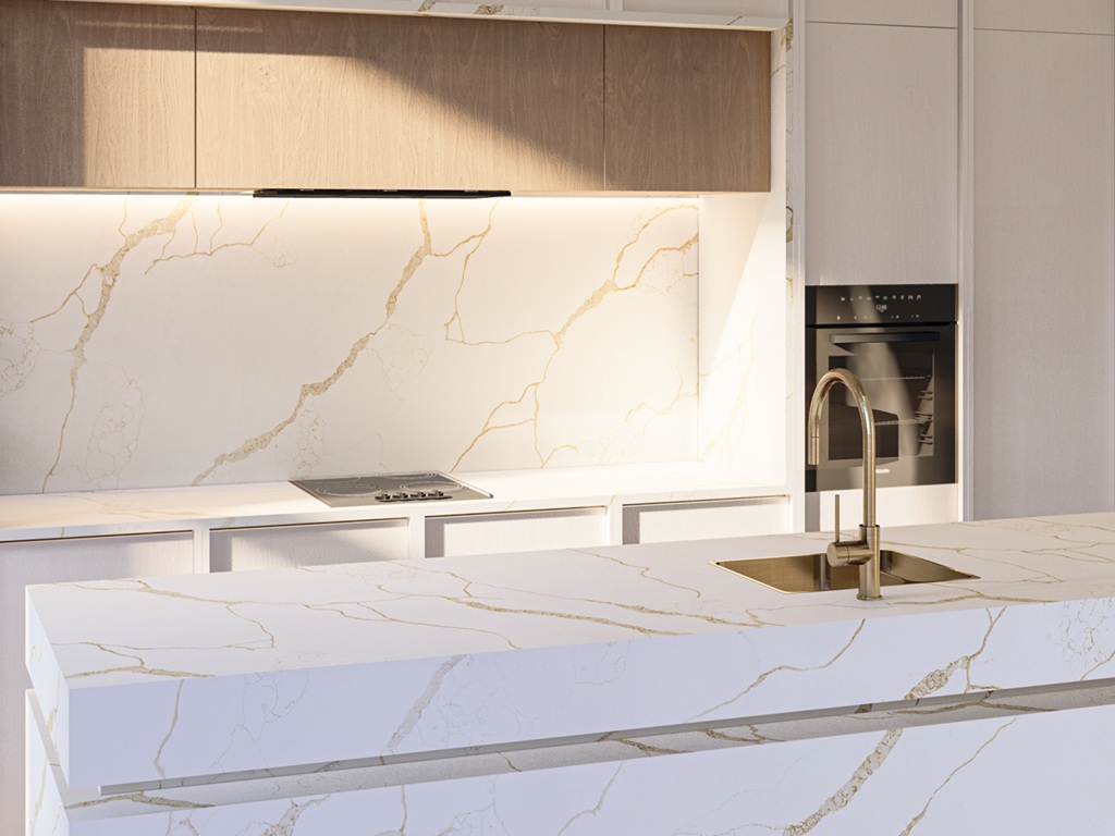 Careful planning of vein direction, joins, and edge profiles ensures Calacatta Sydney Gold Quartz reads naturally across sinks, hobs, corners, and feature ends. Accurate slab positioning and fabrication detailing help preserve the slab’s decorative movement while supporting long-term performance in everyday residential environments.