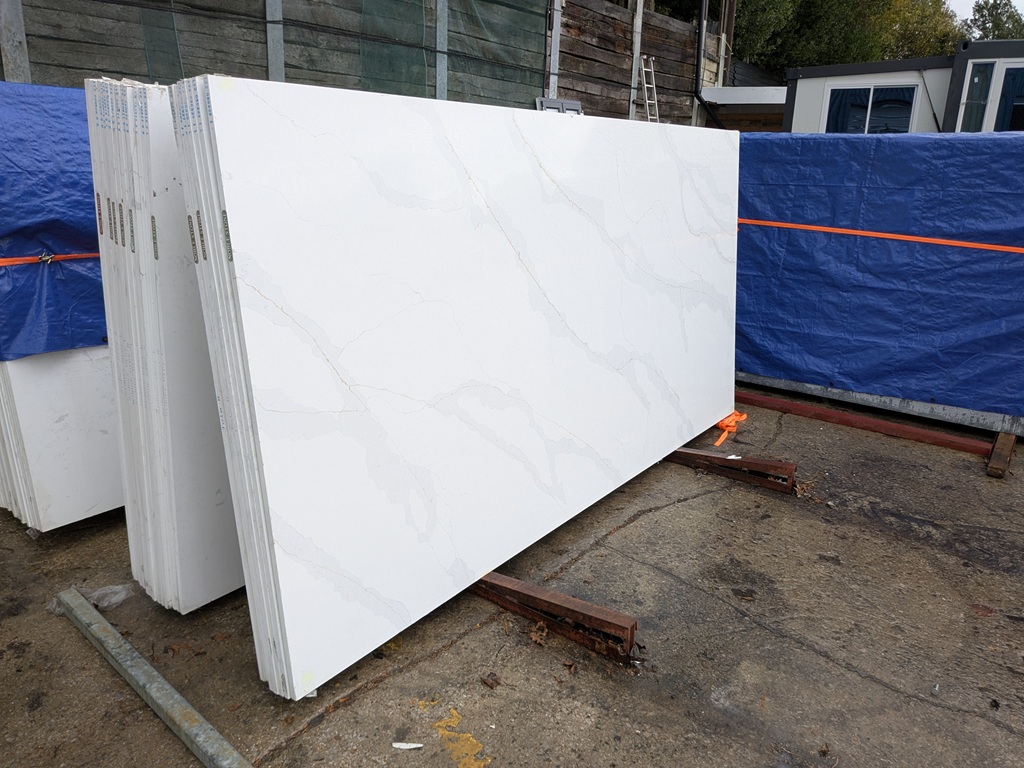 Calacatta Tala Quartz Noble Stone is suitable for kitchen worktops, islands, splashbacks, utility rooms, and bathroom vanities. Its flowing veining provides architectural definition in open-plan layouts while remaining refined enough for continuous surface applications.