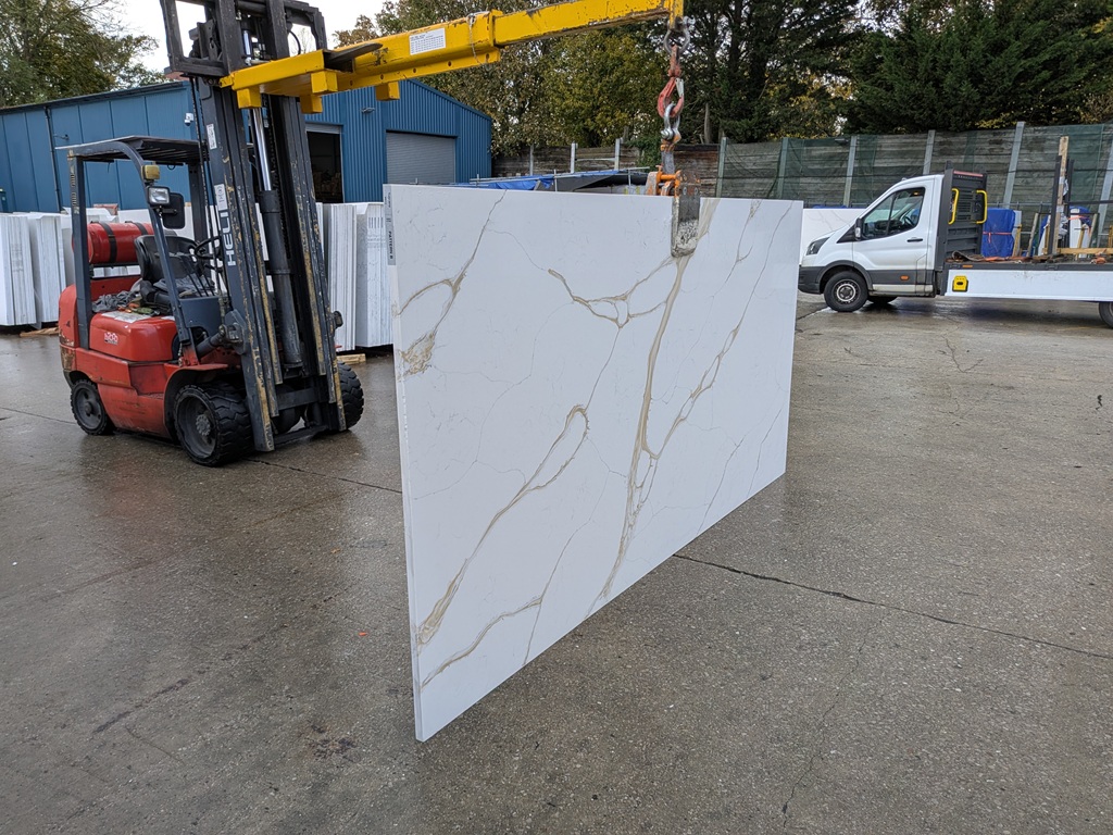 Calacatta Tuscany Quartz Noble Stone is well suited to kitchen worktops, islands, splashbacks, utility areas, and bathroom vanities. Its cool white base and warm golden veining provide refined definition in open-plan layouts while remaining elegant enough for continuous surface applications.