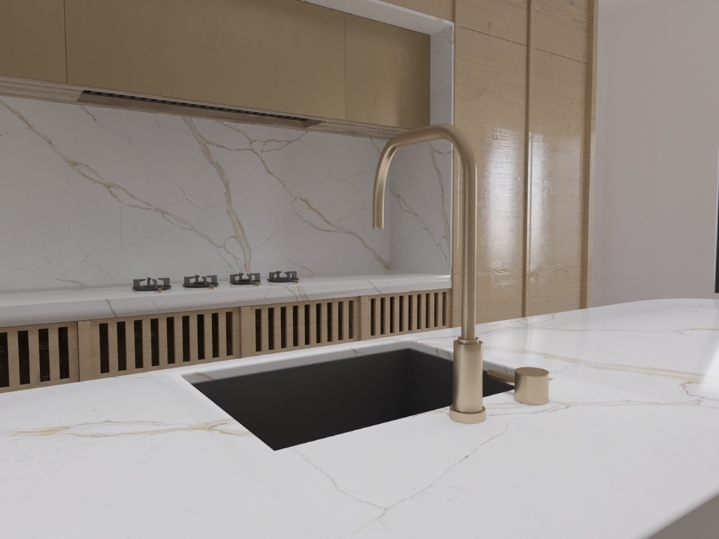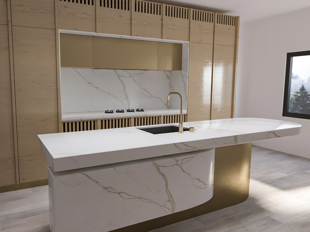 Careful planning of vein direction, joints, and edge profiles ensures Calacatta Tuscany Quartz reads naturally across sinks, hobs, corners, and feature ends. Accurate slab alignment and detailing help preserve the slab’s warm visual rhythm while supporting long-term performance in everyday environments.