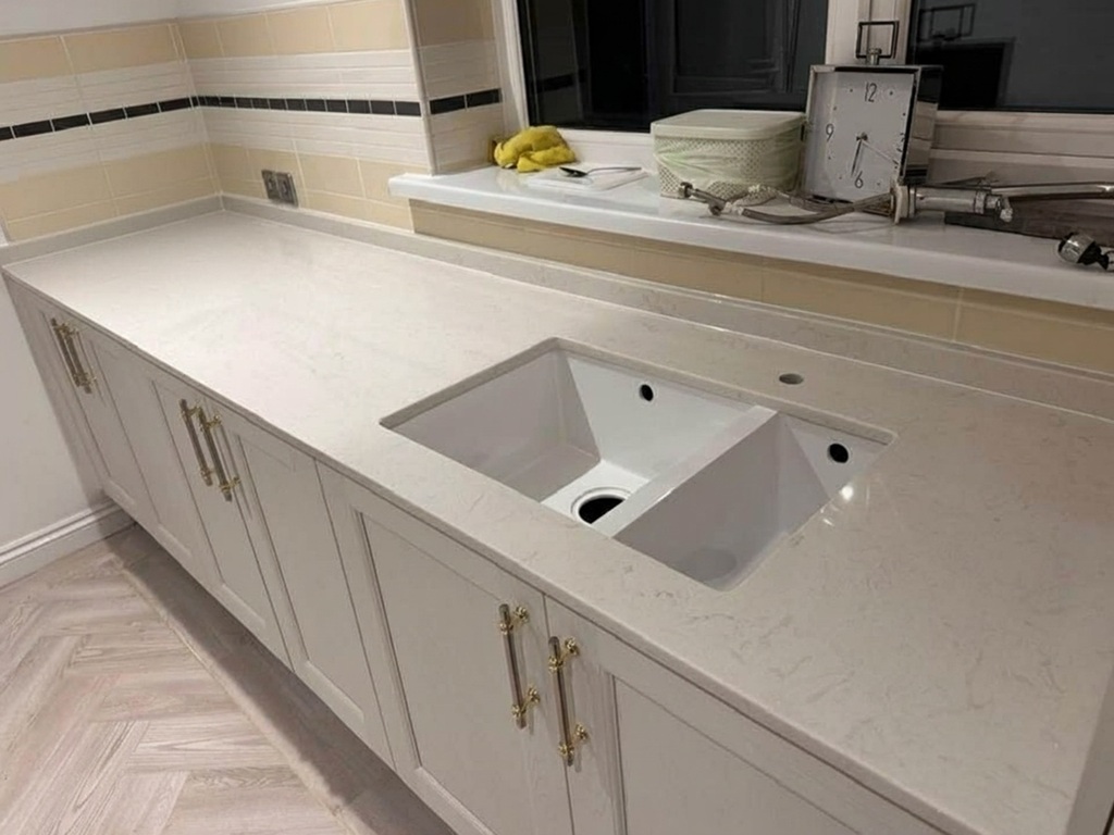Careful planning of vein direction, joins, and edge profiles ensures Carrara Sahara Quartz reads naturally across sinks, hobs, corners, and feature ends. Accurate slab alignment and detailing help preserve the slab’s subtle rhythm while supporting long-term performance in everyday residential environments.