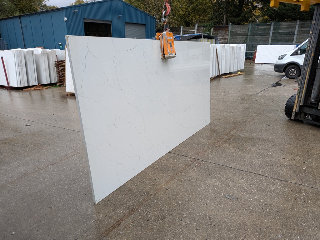 Engineered quartz construction provides a dense, low-absorption surface that supports daily kitchen and bathroom use. Cortino Quartz Noble Stone is resistant to common household spills and surface wear when cared for correctly, helping maintain its clean background and fine line detail over time. Because the veining is delicate and evenly distributed, accurate fabrication and consistent slab calibration support clean joins, precise cut-outs, and sharp edge detailing, ensuring the finished installation looks crisp and controlled across sinks, hobs, corners, and feature ends.