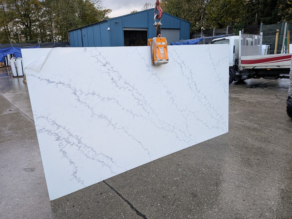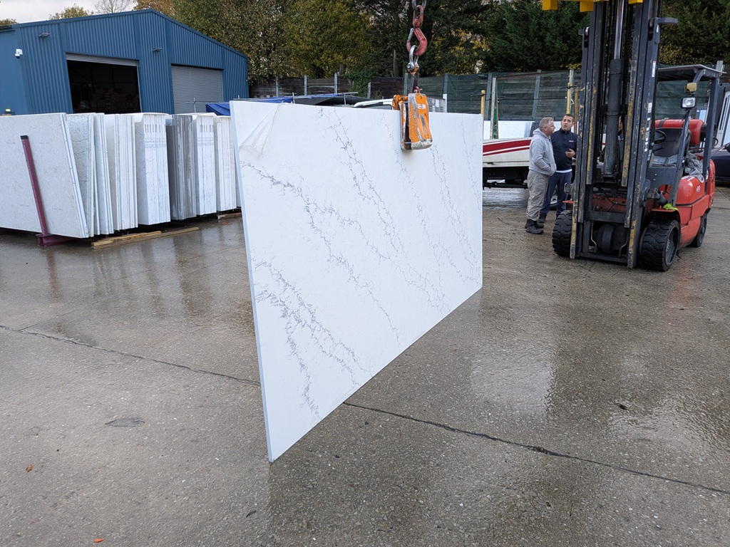 Silk White Quartz Noble Stone is well suited to kitchen worktops, islands, splashbacks, utility rooms, and bathroom vanities. Its soft veining and low-contrast colouring provide definition in open-plan layouts while remaining controlled enough for continuous surface applications.