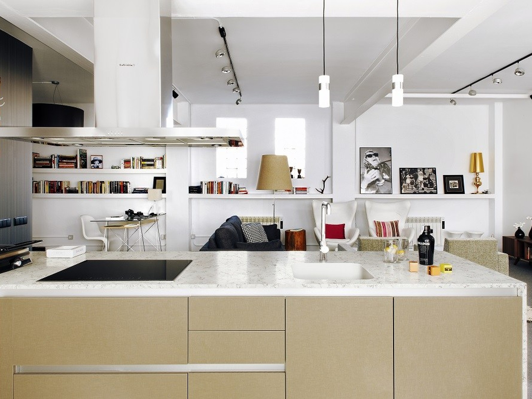 Blanco Orion Quartz Sile Stone works particularly well in interiors that favour light, neutral palettes and subtle surface detail. Its off-white base pairs naturally with white, soft grey, and pale wood cabinetry, while also providing contrast against darker finishes without appearing stark. Used across kitchen islands, waterfall ends, or full-height splashbacks, the slab maintains visual continuity and a calm, cohesive look throughout the space.