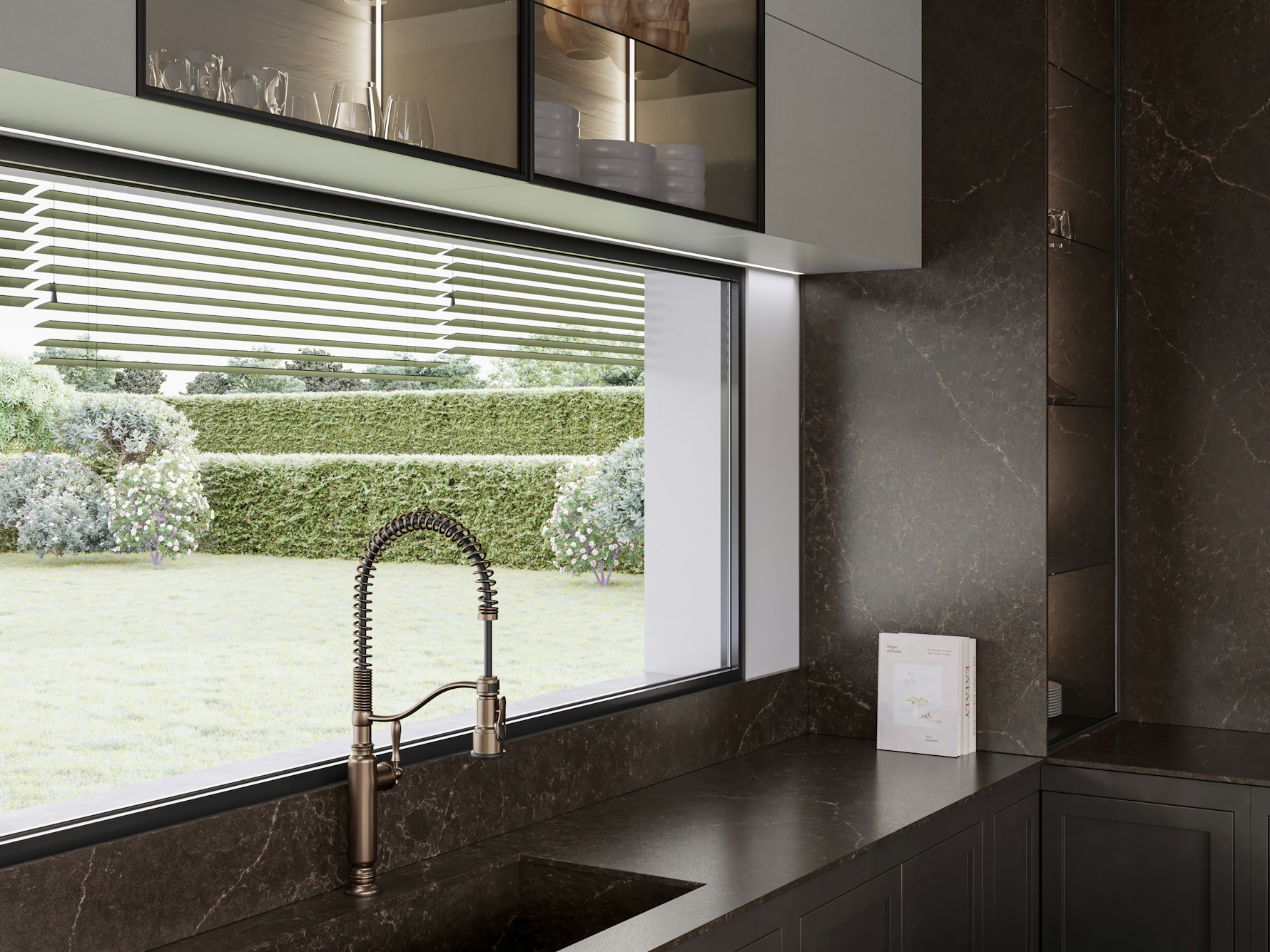 Château Brown Quartz is engineered with a dense, non-porous structure that supports everyday kitchen and living space use. The surface helps resist absorption from common household spills when cleaned promptly, preserving both colour depth and veining clarity. Precision fabrication ensures cut-outs and joins remain discreet, maintaining visual continuity across installations.