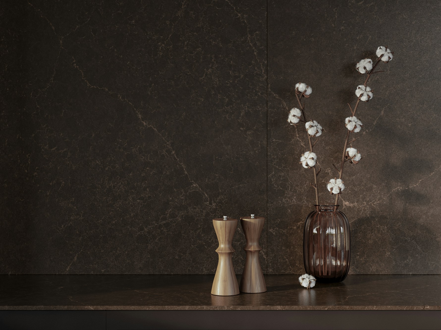 Château Brown Quartz is suitable for kitchen worktops, islands, splashbacks, bar counters, and feature surfaces where rich colour and subtle movement are desired. Its balanced pattern and warm tone make it ideal for both contemporary and transitional interiors that prioritise depth, material quality, and visual harmony.