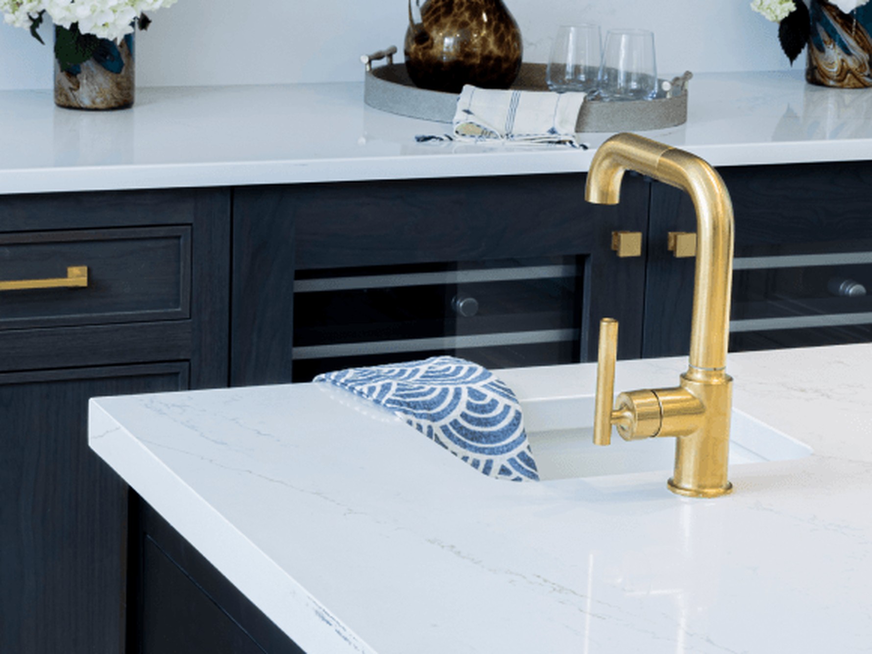 Careful planning of vein direction, joins, and edge profiles ensures Ethereal Glow Quartz reads naturally across sinks, corners, and feature ends. Accurate slab alignment and detailing help preserve the slab’s gentle movement and luminous appearance while supporting long-term performance in everyday environments.
