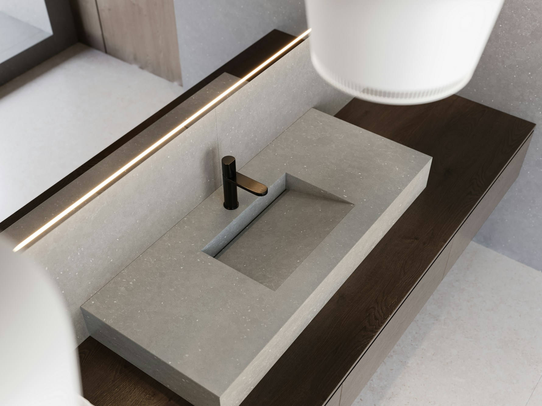 The Ffrom01 quartz from Sile Stone slab features a smooth warm grey base with a finely balanced distribution of small mineral flecks scattered evenly across the surface. Subtle tonal variation and soft particulate detailing create a calm, consistent appearance without visible veining or directional movement. The overall look is clean and understated, giving Ffrom01 Quartz a contemporary, concrete-inspired character that remains uniform and visually stable across large worktop runs and vertical installations.
