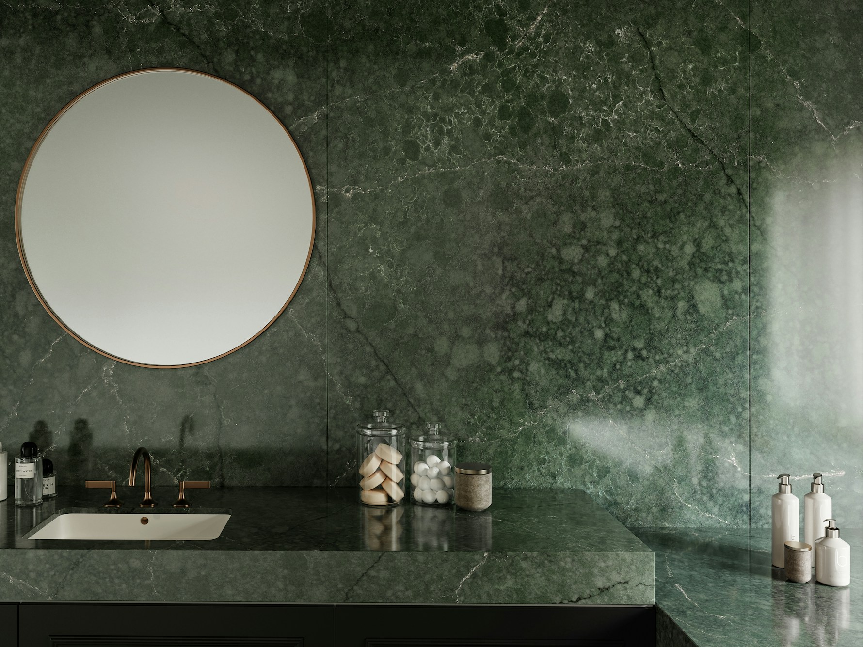 Careful planning of joins, vein direction, and edge profiles ensures Jardin Emerald Quartz maintains its natural flow across sinks, corners, and feature ends. Accurate detailing and installation help preserve the slab’s layered appearance while supporting long-term performance in everyday environments.