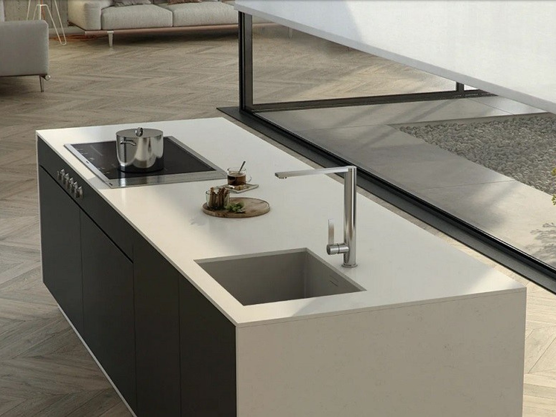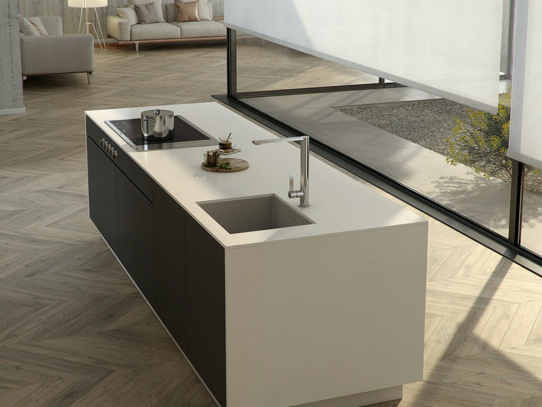 Miami Vena Quartz Sile Stone is ideal for interiors that prioritise brightness, simplicity, and refined detailing. Its soft veining works seamlessly with white, light grey, and neutral cabinetry, while also pairing well with darker finishes without appearing busy. Used across kitchen islands, long worktop runs, or full-height splashbacks, the slab provides visual continuity and a calm backdrop that supports a wide range of design styles.