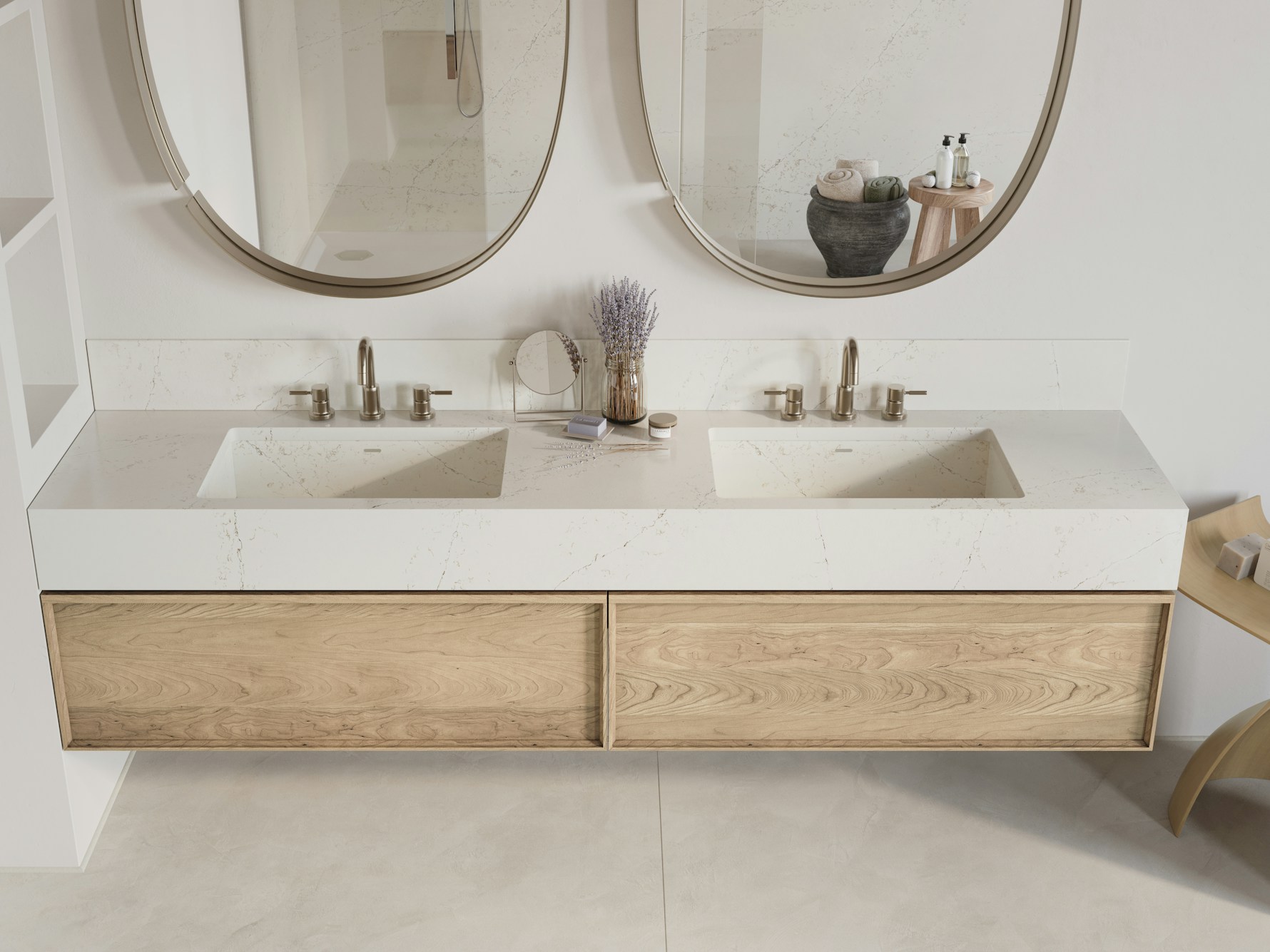 Careful planning of vein direction, joins, and edge profiles ensures Siberian Quartz maintains its calm and cohesive appearance across sinks, corners, and feature ends. Accurate slab alignment and detailing help preserve the slab’s gentle movement while supporting long-term performance in everyday environments.