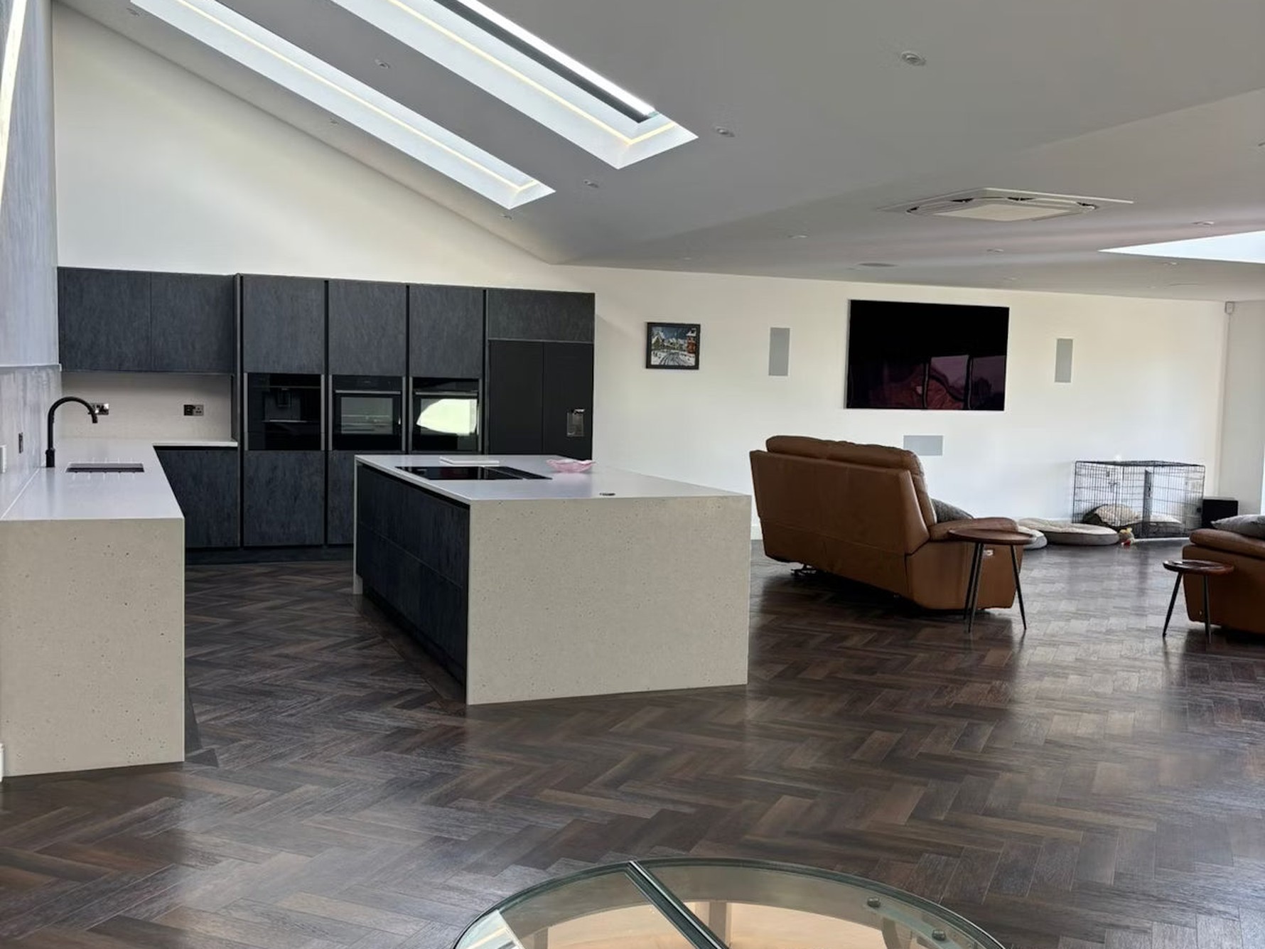 Yukon Quartz is supplied in a jumbo slab size of 3200 × 1600 mm, supporting expansive layouts with minimal joins across long worktop runs and islands. Available in both 20mm and 30mm thickness options, it accommodates slim contemporary edges as well as more substantial profiles. Mitred edges, waterfall ends, and full-height splashbacks can be specified to maintain a seamless, continuous appearance.